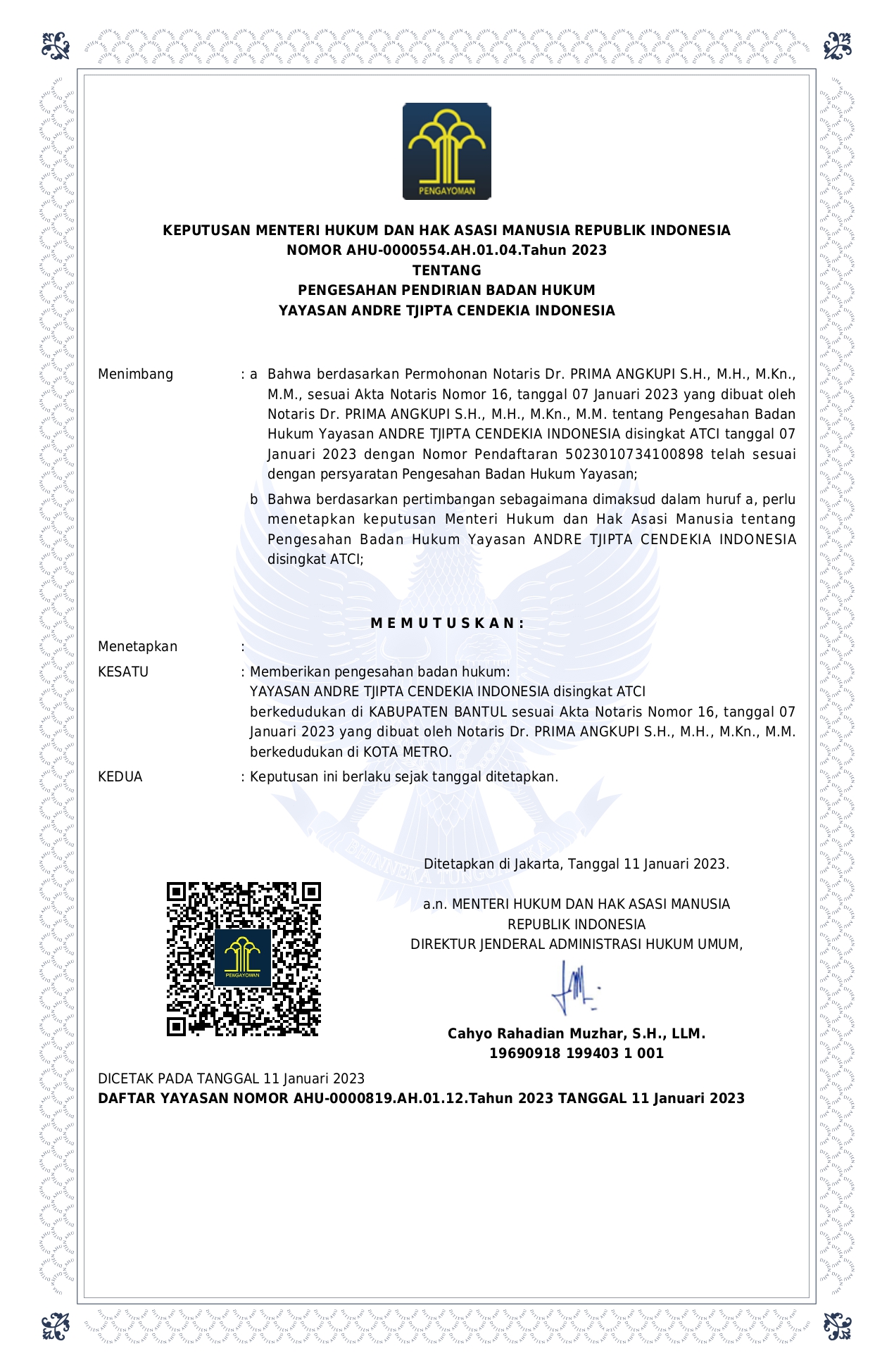 Yayasan Andre Tjipta Cendekia (YATC) atau yang dulunya dikenal Youth As The Cadre Indonesia merupakan Non Govermental Organization (NGO) yang bergerak di bidang sosial berbasis pengabdian masyarakat lintas disiplin yang terbuka untuk umum dengan tujuan memfasilitasi pemuda dari seluruh pelosok Indonesia dengan berbagai latar belakang sosial, suku, agama, budaya, dan daerah yang berkomitmen untuk mengembangkan diri juga berkontribusi positif nan nyata dalam pemberdayaan masyarakat serta pengembangan dan pembangunan Indonesia.